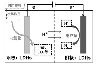 目前塑料(PET和PLA)主要通过机械方法回收,其余的在垃圾场填埋或直接被丢弃,这不仅严重破坏十大性爱直播平台,而且造成资源的大量浪费。近年来,以可再生电能为驱动力的电解水制氢耦合催化氧化技术为实现废塑料的高值转化提供了一条绿色新途径,可以在制备高值含氧化学品的同时联产绿氢。具体来说,通过两个电极分别连接外部电路与电解质,在常温常压条件下,阳极的废塑料在碱性电解液(如KOH)中分解为乙二醇等化学品后,并通过电催化氧化得到甲酸、乙醇酸等高值化学品,同时在阴极端水分子通过还原反应生成氢气。因此,和动力学参数以及精心设计催化剂、电解池结构以及深入了解废塑料在电解过程中的反应机理是实现氢气高效生成的关键。