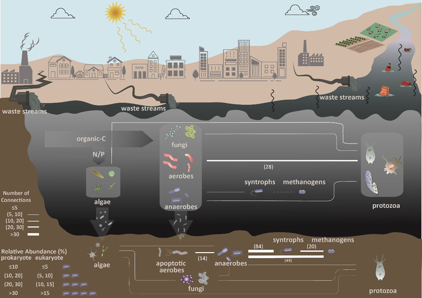为了确定有机污染导致的黑臭水体是否具有独特的微生物组、群落构建过程及其主控因子,该研究首先采集了中国和印尼82个城市200条典型黑臭水体的水及沉积物样品,并对其16S/18S rRNA基因扩增子测序及qPCR与理化因子进行了全面分析,最后通过黑臭水体模拟实验进行了验证。研究结果表明:(1)黑臭水体微生物组群落构建的影响因子中,易降解溶解性有机物(DOC)与地理因素对原核及真核微生物群落的构建起到重要作用,尤其是DOC在调控微生物分类组成上起到关键作用;(2)基于相异性-重叠分析(Dissimilarity-Overlap Analysis,DOA)发现黑臭水体的水与沉积物群落存在统一的群落动态模式,并与富营养化和寡营养化水体的动态模式明显不同;(3)黑臭水体中原核和真核微生物群落分别由确定性过程和随机性过程主导;(4)结合黑臭水体模拟实验发现黑臭水体原核微生物群落在黑臭前、中、后三个阶段的群落构建过程表现为三相循环演替过程。该研究首次对大地理尺度上的黑臭水体微生物群落构建机制与特征进行了全面分析和实验验证,研究结果为认识和调控黑臭水体微生物组提供了理论依据和信息支持。//doi.org/10.1111/gcb.16472