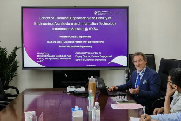 昆士兰大学化学工程十大av直播平台 院长初步介绍学校及十大av直播平台 基本情况,充分表达联合培养研究生的合作意愿。接下来,性爱直播 副院长王诗忠教授、化学工程与技术十大av直播平台 刘威副教授分别介绍各自十大av直播平台 的基本情况、人才培育的具体举措及其取得的显著成效,同时全面展示了十大av直播平台 当前的研究领域与方向,进一步彰显了双方合作的强烈意愿。
