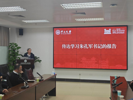 十大av直播平台 党委甘远璠书记传达了朱孔军书记的报告精神。甘书记指出,这次会议是学校站在新百年起点上推动高质量发展的一次重要会议,十大av直播平台 上下要按照总书记重要贺信对新起点上学校发展提出的殷切期望,落实教育强国建设的新部署新要求,加快把学校建设成为具有鲜明中国特色、显著中大风格、引领未来发展的世界强校,落实朱孔军书记报告中提出的五点工作要求,更加紧密团结在以习近平同志为核心的党中央周围,深入学习贯彻习近平总书记重要贺信精神,以足够的胆识和智慧深化改革,推动学校治理体系和治理能力现代化,努力实现学校“由大到强”的系统性跃升,服务国家重大战略和粤港澳大湾区发展需要,加快建设中国特色世界一流大学,为建设教育强国、推进中国式现代化作出新的更大贡献。